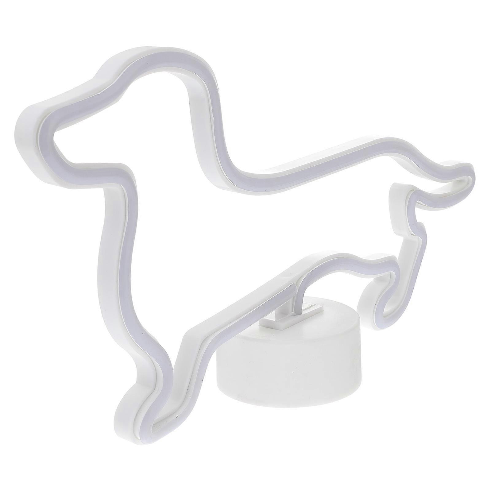 This is a lovely dog modeling neon light sign, made of plastic materials, safe and durable for long time to use. Creative design, smooth surface, safe to your hands. It can be used in the bedroom, living room, study, and more places to decorate various daily life or holidays. Also be used as a wonderful present choice for family and friends. Features - Color: white. - Material: plastic. - Size: 42.50X20.00X8.50cm/ 16.70X7.86X3.34inch. - Voltage: <=36V. - Power: 10W. - Light color: Blue light. - Power supply: 3 x AA Batteries(not included) - This decorative lights can be used to decorate the living room, bedroom and more places you want. - Light weight, compact size, can be placed easily and stably on the table, shelf, etc. - The delicate dog shape helps to create a warmer, lovely, relaxed and festive atmosphere. - Nice lights color and detailed workmanship are a highlight of this pretty decorative neon lamp. - Made of plastic material, this lamp is safe and durable, not easy to break or deform for long time to use. Package list: 1 x neon lamp(batteries not included)
