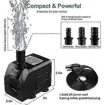 مضخة نافورة غاطسة 150gph 8w 600l / h مدمجة وهادئة مع قطر داخلي لخرطوم 3.3 قدم