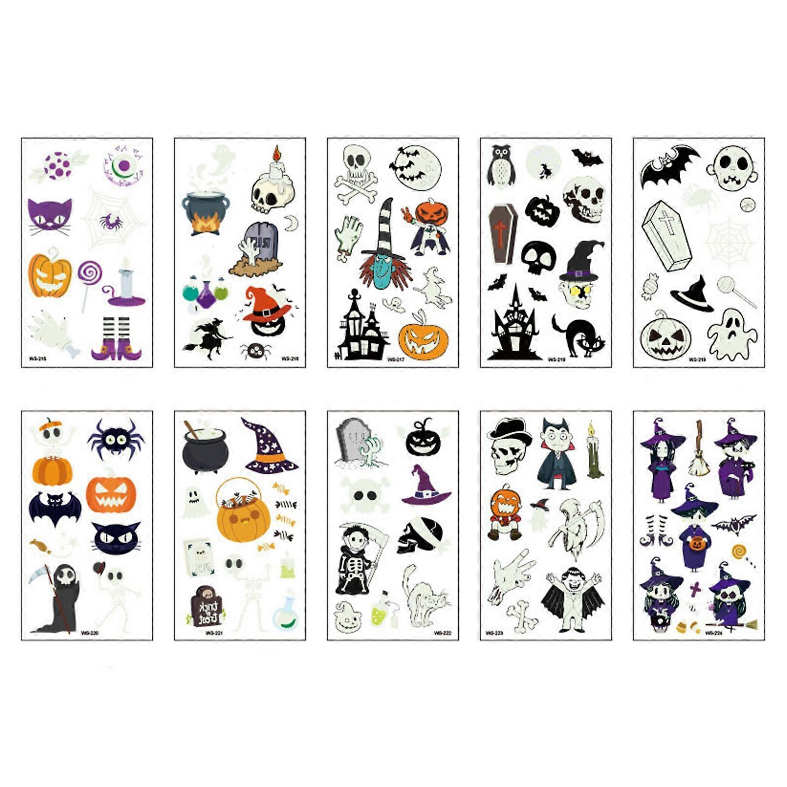 Luminous Halloween Temporary Tatoos for Adults and Kids,10Pcs Face Body Tatoos Glow In Dark Halloween Party