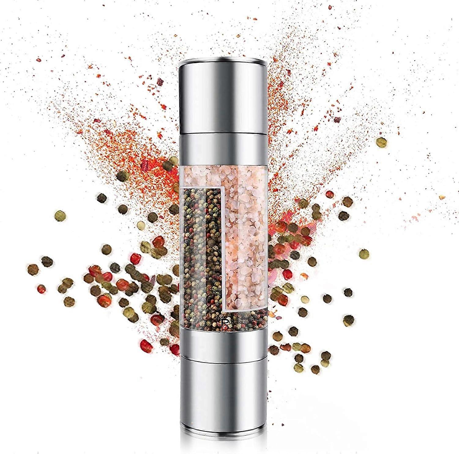 Pepper Mill,2 in 1 Spice Mills,Manual Ceramic Core Double Head Salt Mill Adjustable Grain Size,Peppe