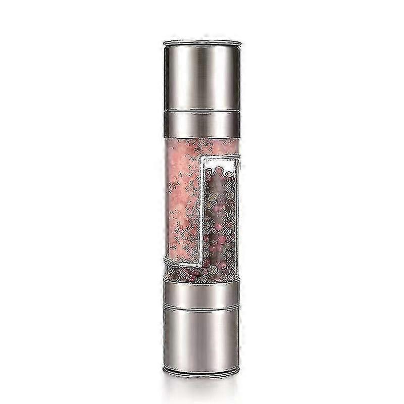 Sea Salt And Pepper Grinder, Stainless Steal 2 In 1 Dual Chambers, Seasonings Spices Mill With Adjus