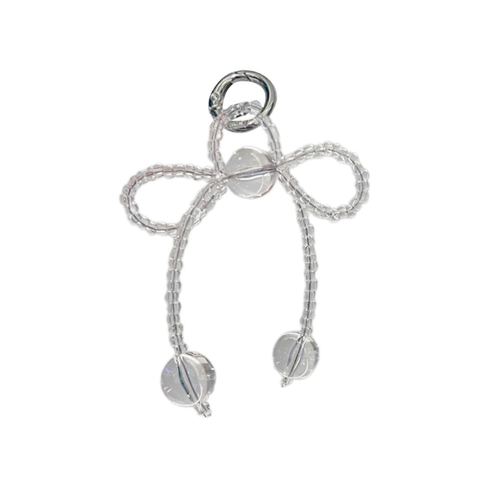 Beaded Bowknot Keychain Lovely Decorations Keyring Ornament Backpack Handbag Charm Pendant Gift for Girls Women Transparent