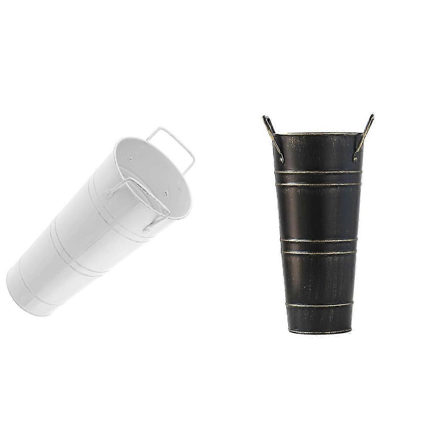 Versatile and Stylish: This metal umbrella stand can not only be used to organize your umbrellas, but can also be used as a decorative vase or plant pot stand, and its smooth and vintage design enhance the beauty of any room. Suitable for a variety of environments: Perfect for rooms, offices, or commercial spaces such as coffee shops, this umbrella stand adds of sophistication and functionality, making it a practical and elegant addition to any decor. and Convenient: Made from high-quality metal, this umbrella stand ensures stability and durability, prevents accidental spills, and facilitates easy movement around your space. Vintage Aesthetic Charm: This umbrella stand doubles as a decorative piece, giving you a nostalgic charm. Its vintage style complements a variety of interior themes, from modern simplicity to classic retro. Organizational Essential: With its modest capacity and versatile design, this umbrella stand is a must-have for anyone looking to up an entryway or enhance the organization and style of a room.<br><br>Please note: the physical slightly color difference or difference, does not affect the use, please do not mind, thank you! Colour:Black & White Material:Metal<br><br>Package Contents: 2 * Umbrella stand<br><br>Only the above package content, other products are not included. Note: Light reflection and different displays may cause the color of the item in the picture a little different from the real thing. The measurement allowed error is +/- 1-3cm.