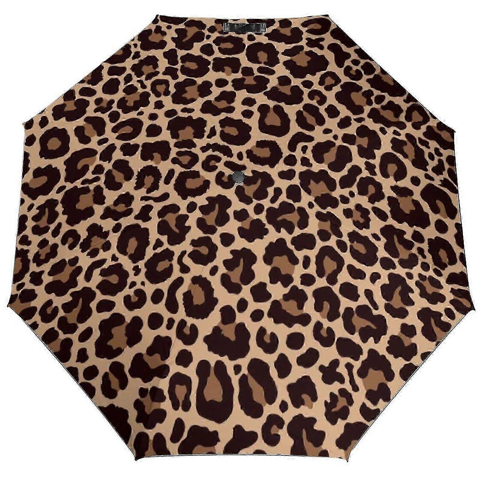 Automatic Folding Umbrella with Leopard Stripes for Women and Men