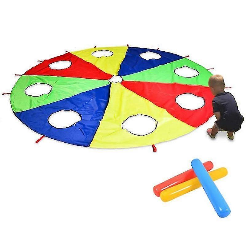 Rainbow Parachute Parachute 6 Feet, Play Parachute Outdoor Game (W Mouse) Activity Toy with 3x Air