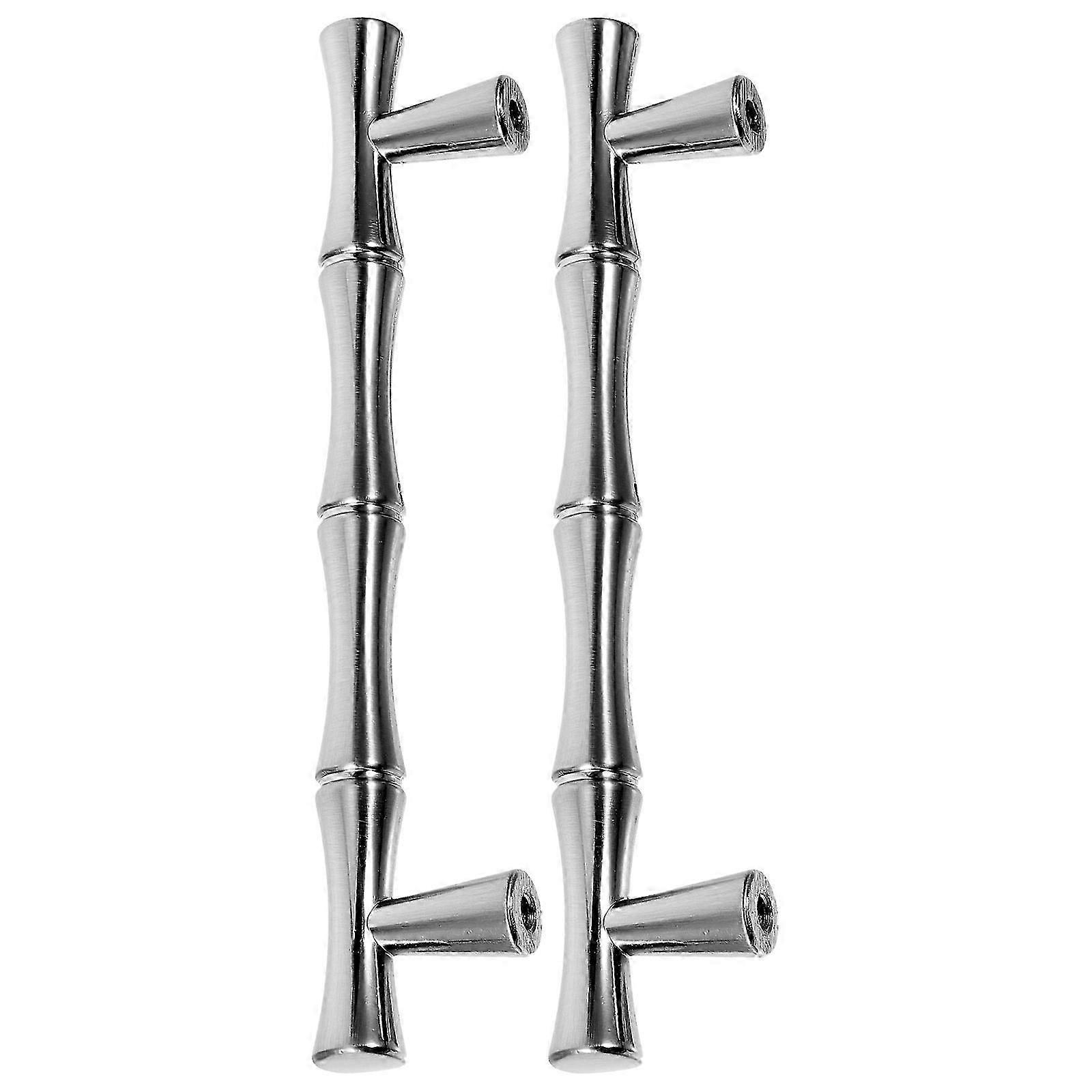 Metal Bamboo Knuckle Door Handle Silver for Cabinet Grip 2Pcs Zinc Alloy