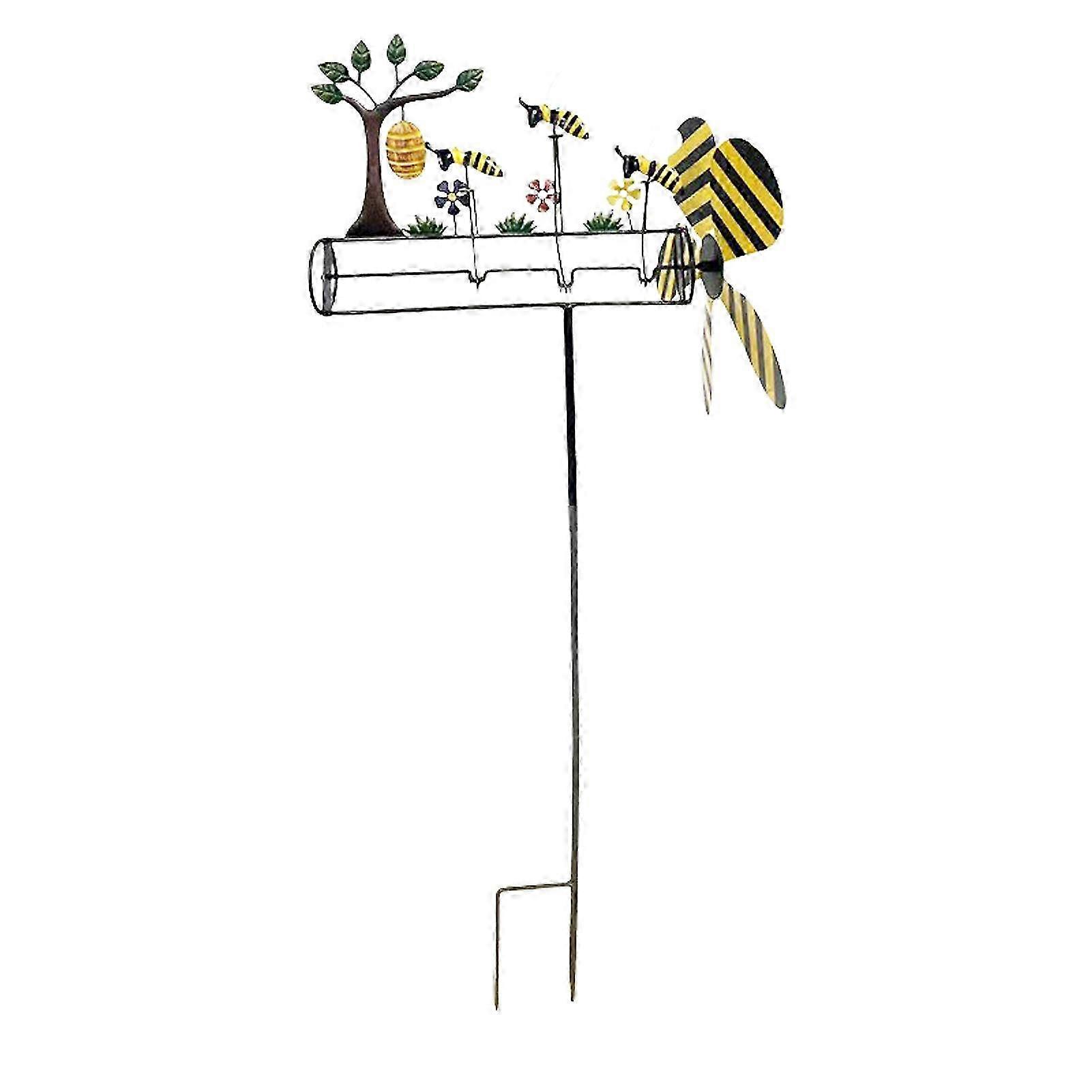 Metal Bee Wind Spinner Garden Decor, 3 Rotating Windmills Outdoor Ornament 107x32cm
