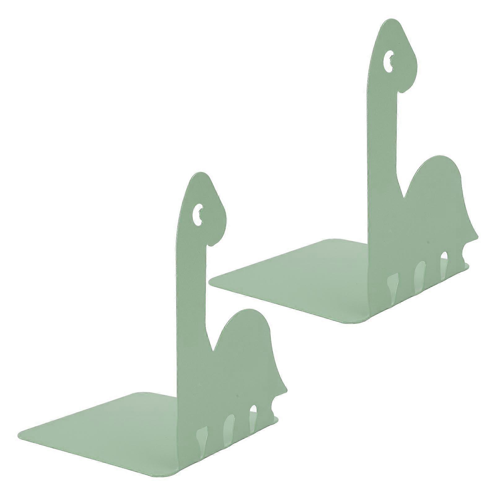 Metal Bookend Steel Cartoon Animal Shaped Non Slip Multifunctional Book End for DVD CD Cabinets Bookstores Light Green Dinosaur