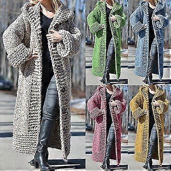معطف الشتاء السيدات عارضة القطن مزيج مقنع معطف سميك محبوك طويل كارديغان