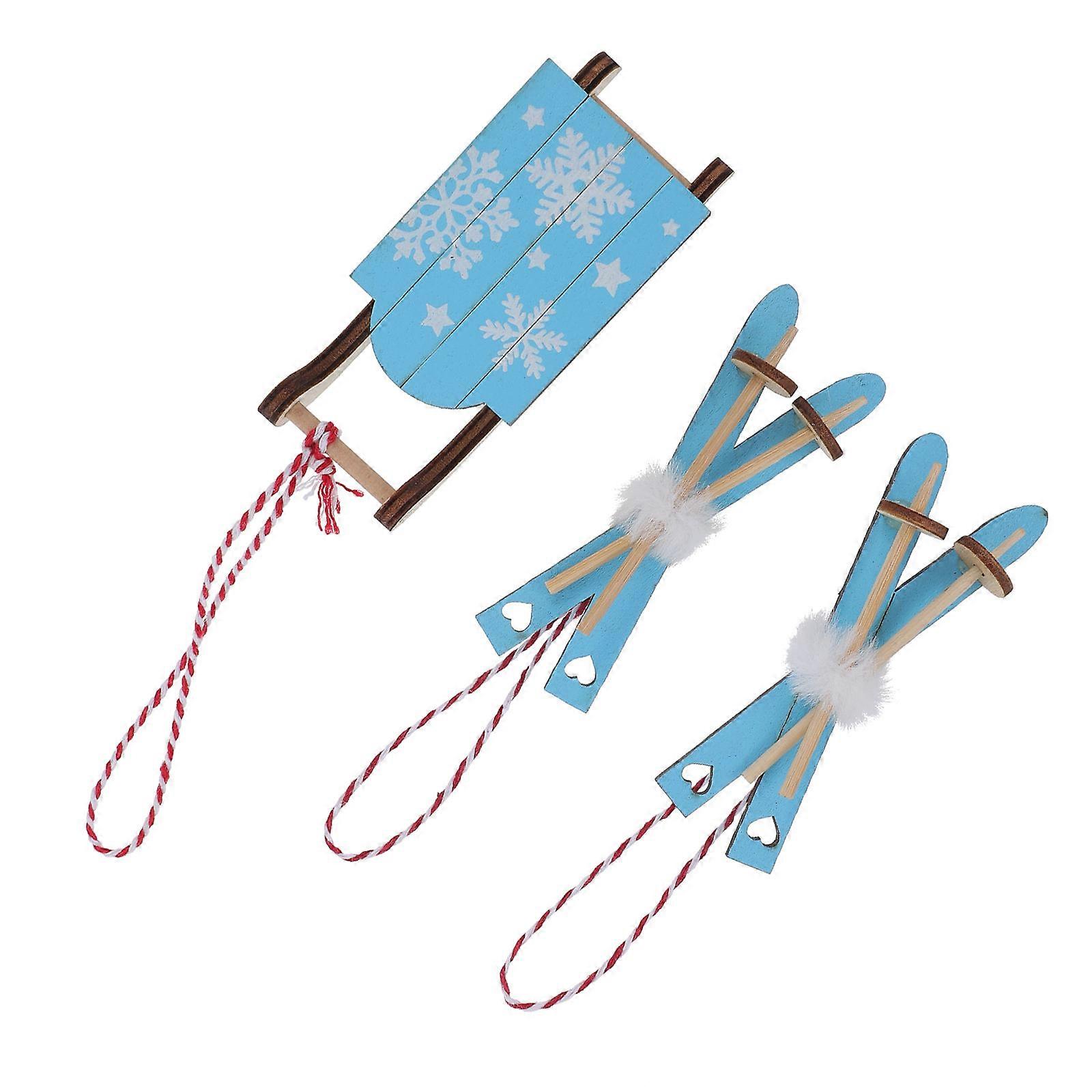 Xmas Tree Pendants Wooden Sleigh Decor Home Decor Blue 10X4.5X3CM Hanging 3Pcs