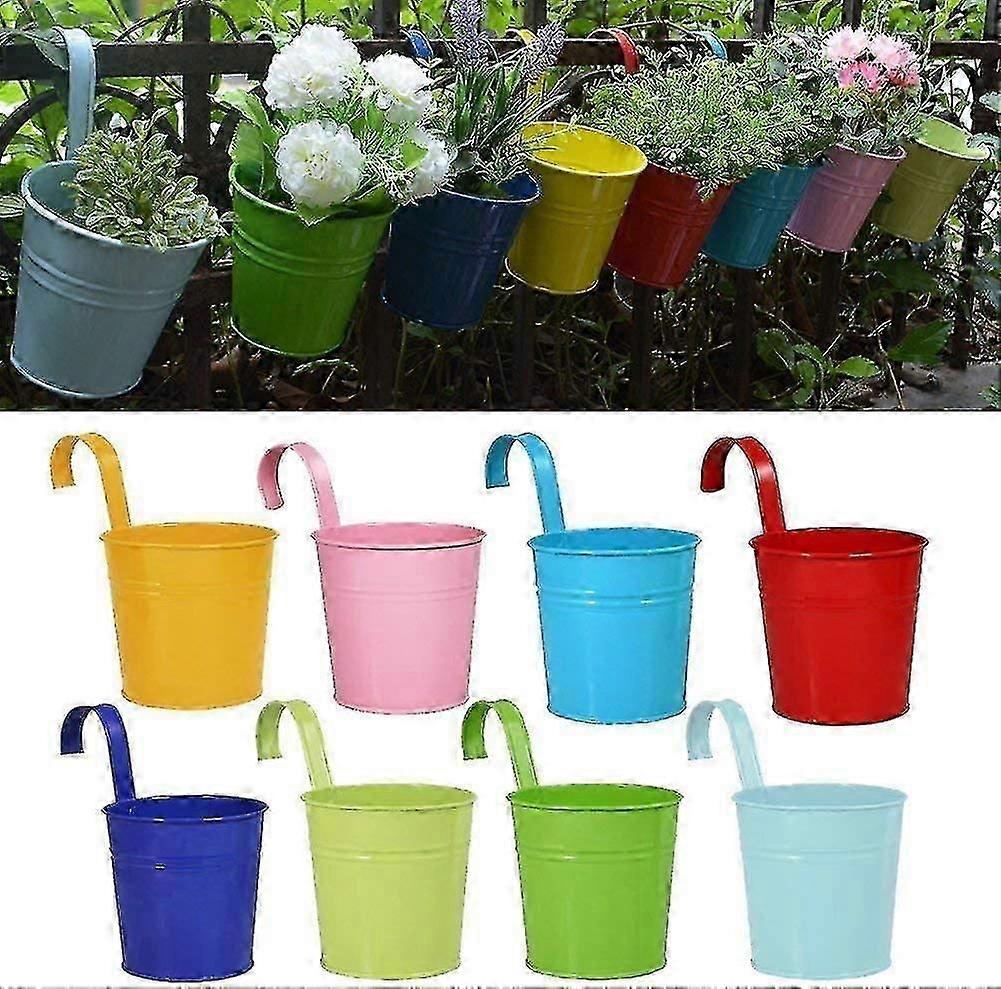 The set of 8 flower pots in different colors are made of durable iron and ideal for the creative gardener. Imagine your home cascading with colorful flowers, tasty herbs, peppers, succulent strawberries, garden salad, plump tomatoes and many more. Installed in Balcony Garden Hanging Decorations, these Plants will add style and color to your garden Can be Used with dried flowers, silk flowers, potted plants, and so on to make small decorative pots assorted outdoors. Balcony and garden decorations, these flower pots will add style and color to your garden