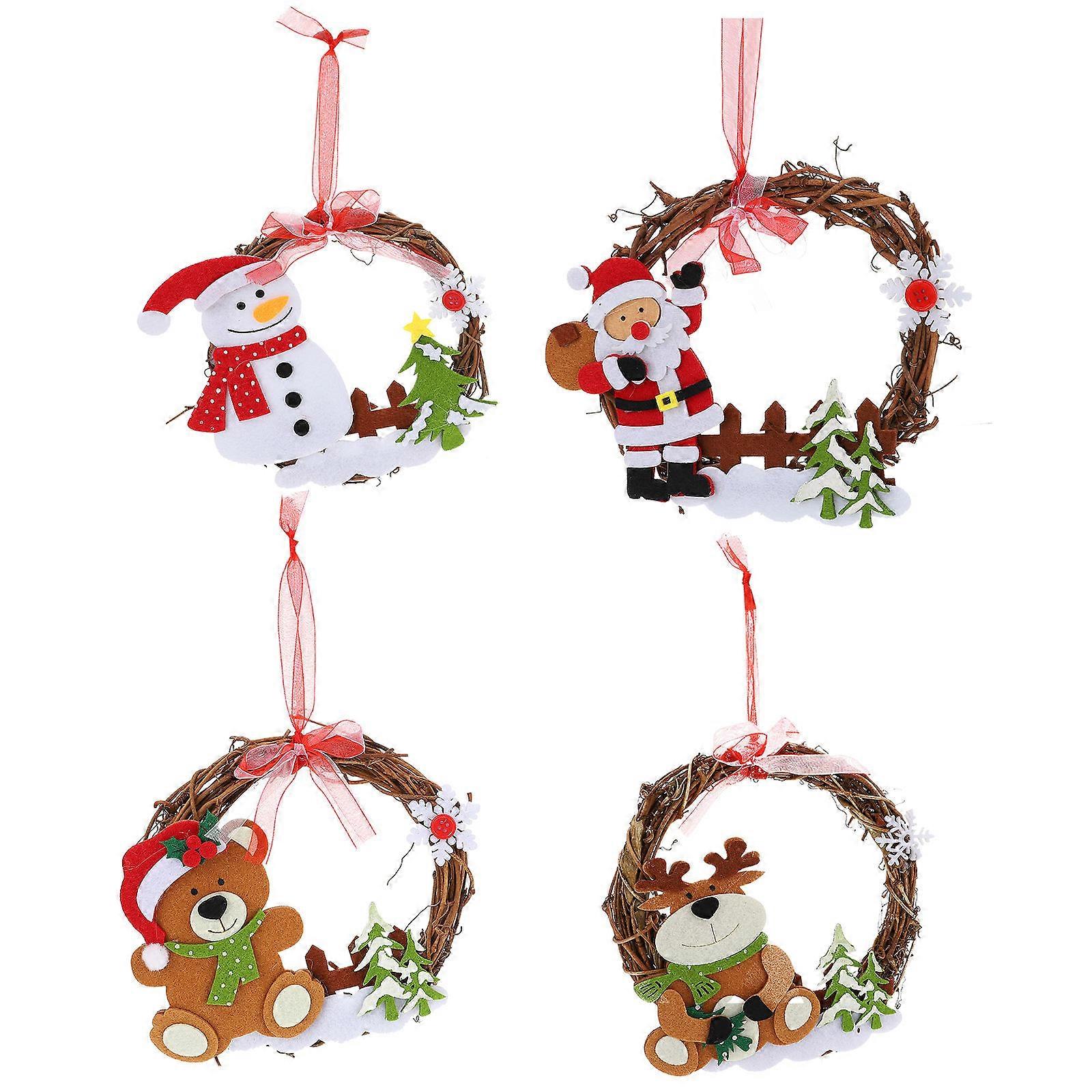Hanging Rattan Circle Christmas Pendant Decorative Pendant Assorted Color 16x16cm 4Pcs