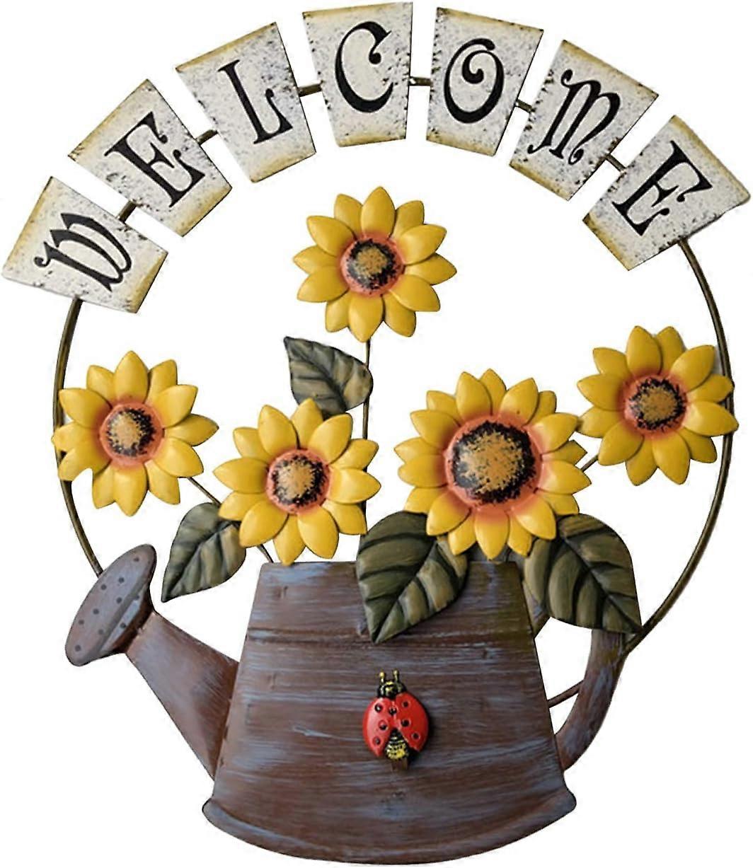 Hanging Sunflower Welcome Sign, Door Sign Vintage Welcome Decor Watering Can Design for Front Door Outdoor Home Wall Yard Porch Bar Store