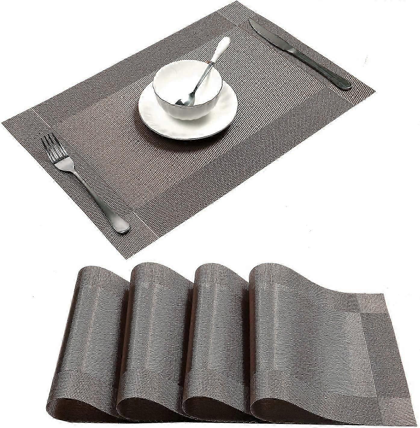Placemat, Crossweave Woven Vinyl Non-Slip Insulation Placemat Washable Table Mats Set of 4 (4pcs placemats, Champagne)