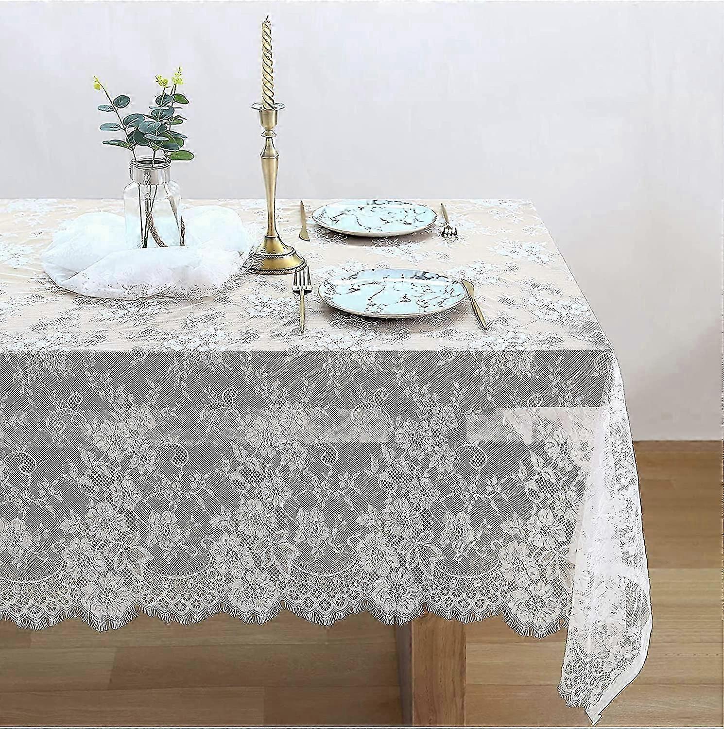 White Lace Tablecloth 150*300cm Embroidered Lace Overlay For Rustic Wedding Vintage Decor Outdoor Summer Reception Party Table Wedding Reception Decor