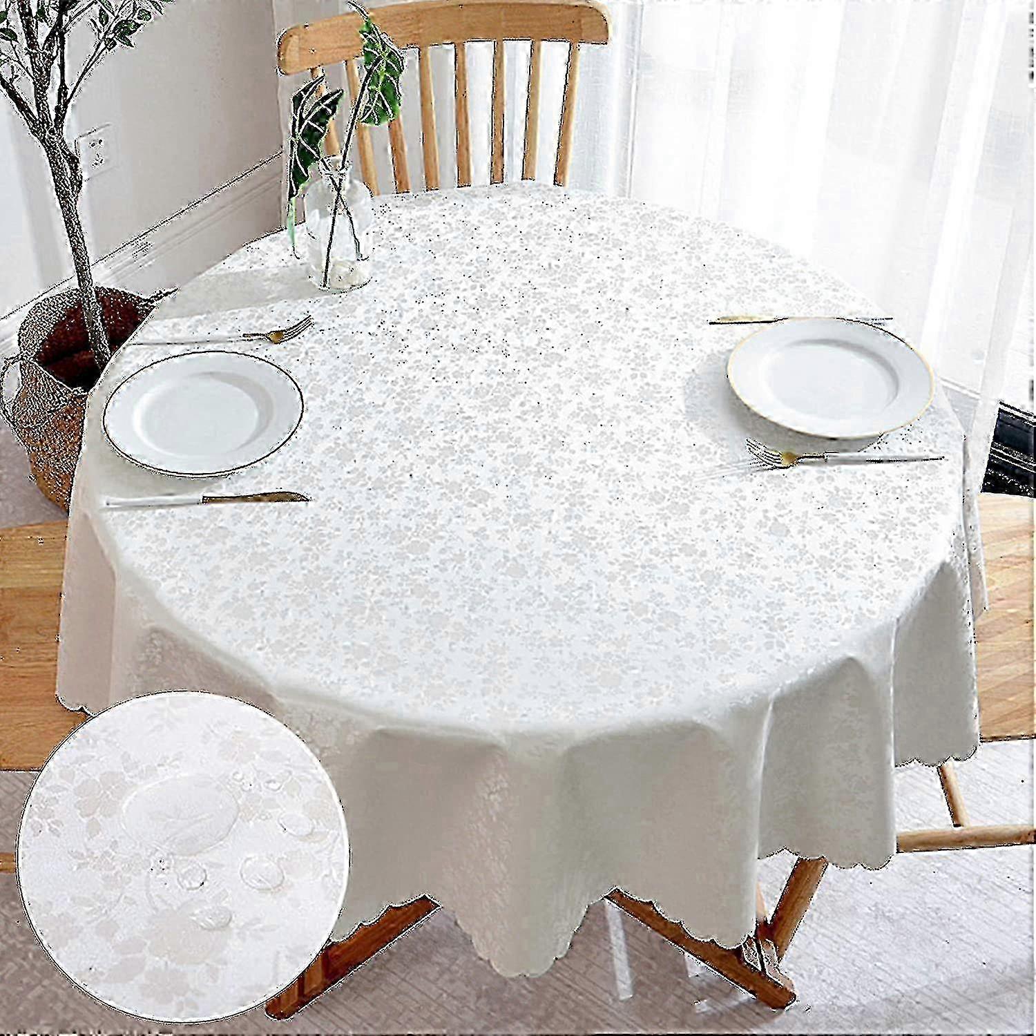 Waterproof Vinyl Tablecloth, Round Heavy Duty Tablecloth, Wipeable Tablecloth For Kitchen And Dining Room (white, 140cm Round) - Ksize
