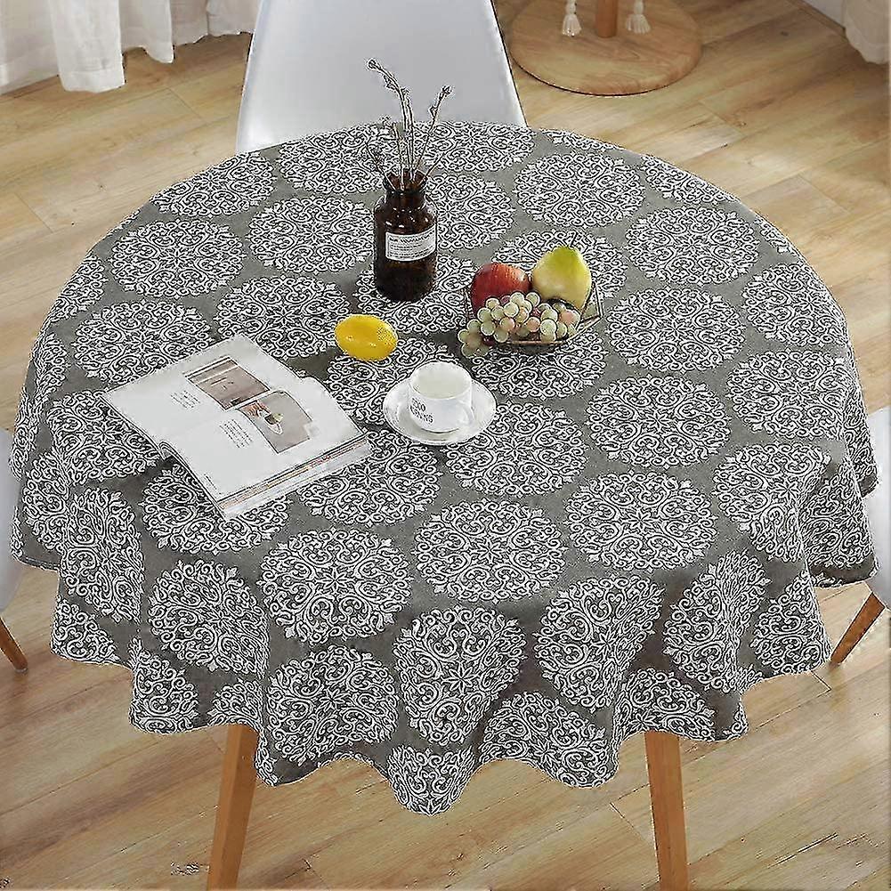 Tablecloth measures 60X60inch(150cm), is hand washable, spill proof, and stain resistant. Fits tables that seat 4-6 people .100 percent cotton, hand washable, gentle cycle, tumble dry low. Low iron if needed.Features: Environmental health material, comfortable feel, natural skin-friendly, anti-wrinkle and wear-resistant, unwiredrawn, high heat does not deform, with good water and oil repellent performance.Smooth surface easily washable, dirt-repellent robust and weatherproof, gentle on the table surface.Material: cotton blended, Recommend hand washing as needed with a mild detergent and Cold WaterFeaturing pattern on high quality cotton linen, durable.No smell, not sticky, wear- resisting.Produktbeschreibung Color Name:Floral Gray Description: 100 percent brand new and high quality! No smell, not sticky, wear- resisting. Featuring pattern on high quality cotton linen, durable. This modern tablecloth will make your meal time more luxurious. Hand wash best. Table cloth is suitable for patio, gardens, kitchen room, dining room, etc. Specification: Material: cotton blended, linen Shape: round Type: round gray arrow, round yellow rice, round color triangleSize(D): 150 cm(approx) Package: 1 pc x Table cloth Note: 1. Due to the light and screen difference, the item's color may be slightly different from the pictures. 2. Please allow 1-2 cm differences due to manual measurement.