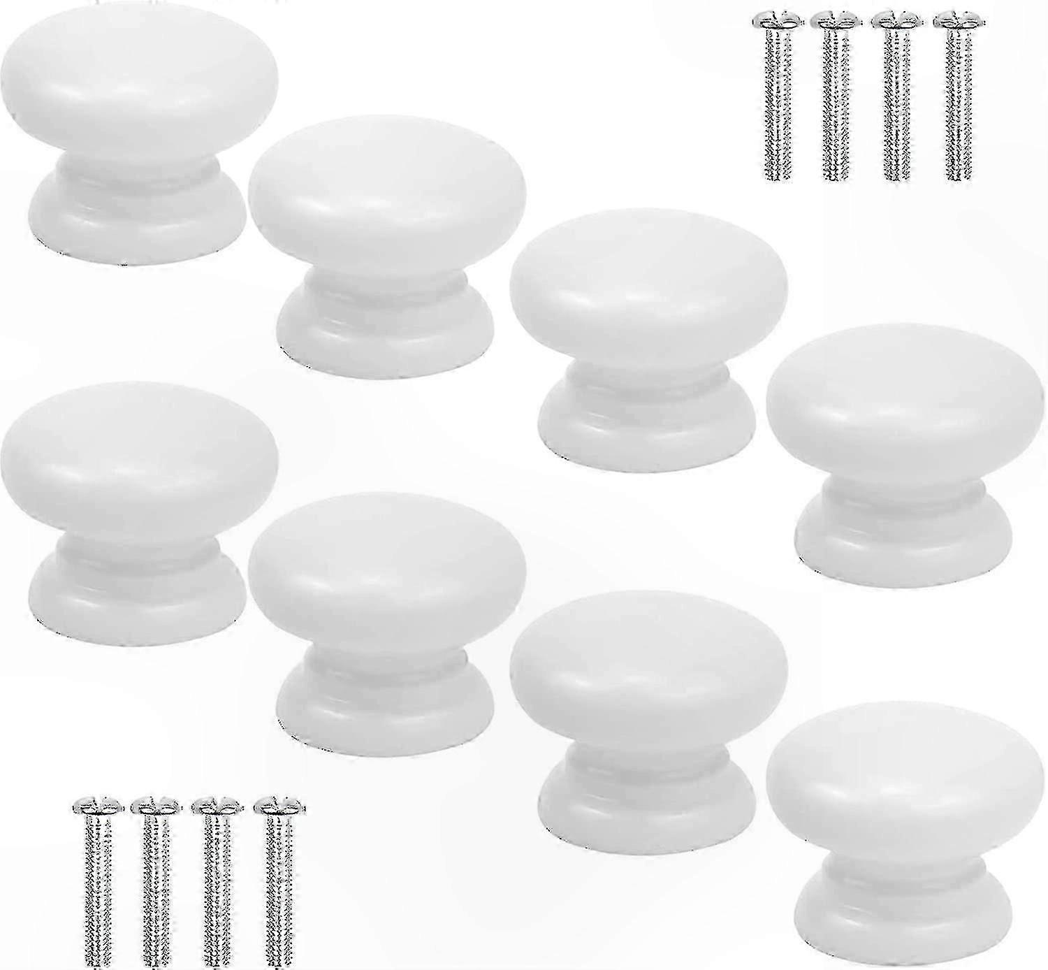White Mushroom Cabinet Knobs, 8 Pack Round Drawer Handles, 33mm Solid Pulls for Furniture