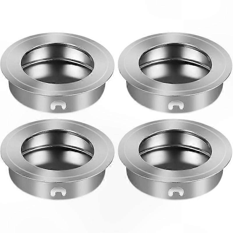 Flush Door Pull - Finger pull designed for use on various internal and external doors, including sliding barn doors, pocket doors, and bifold doors. Suitable for cabinets, furniture, and kitchen applications. Color: As shown Material: Stainless steel Dimensions: 4 x 4 x 1 cm Surface shape: Flat Outer diameter: 41 mm Hole diameter: 35 mm Total height: 10 mm Package includes: 4 pcs recessed pull handles Note: Measurements are manually taken; please allow 13 cm variation. Color may vary slightly due to lighting and screen display differences. Actual product may vary slightly from images.