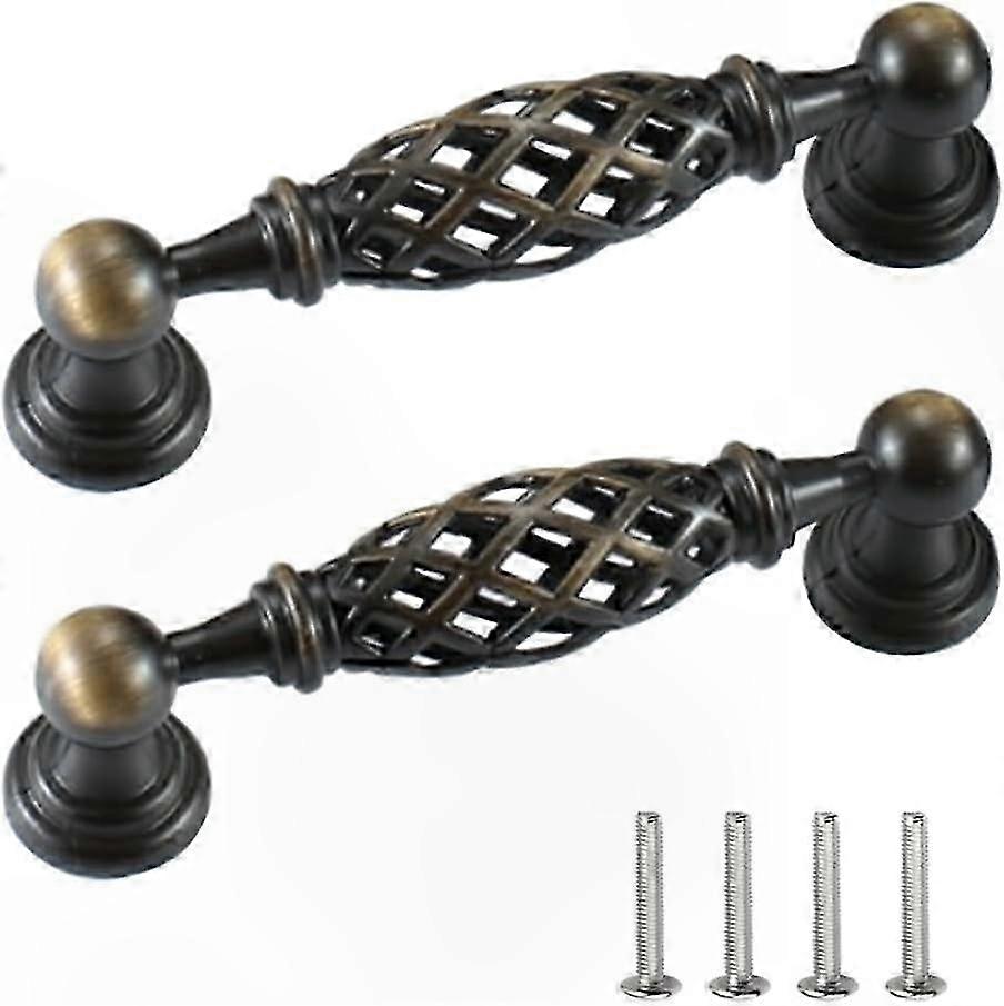 Packing: 2 pieces of retro style kitchen cabinet handle, exquisite appearance, easy to match with many types of furniture. Material: Quality zinc alloy material, strong and durable. With electroplating process, not easy to fade. Size: Hole distance: 96mm; Length: 120mm; Height: 30mm; Width: 21mm. Reasonable size and comfortable grip. Retro style: Bird cage design, kitchen cabinet handle adds antique charm to your space. Application: Suitable for drawers, shoe cabinets, wardrobes, bookcases, and wardrobe drawers.