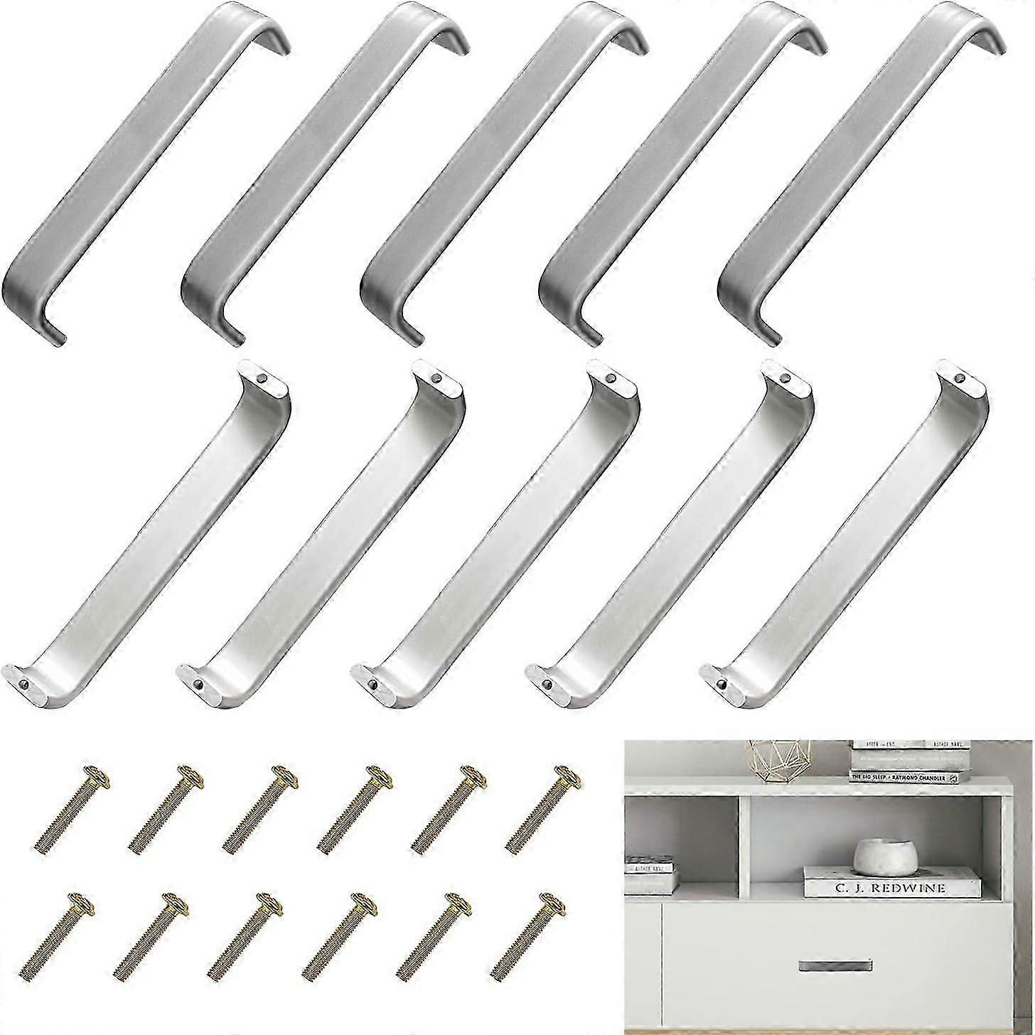 These cabinet door handles and pulls are made of zinc alloy, providing a strong and durable construction. The handles measure 133mm in length and 128mm in center to center. Easy to install with included mounting screws. The handles are suitable for kitchen cabinets, wardrobes, and other furniture. This set includes 10 handles, enough to outfit a single cabinet or wardrobe.