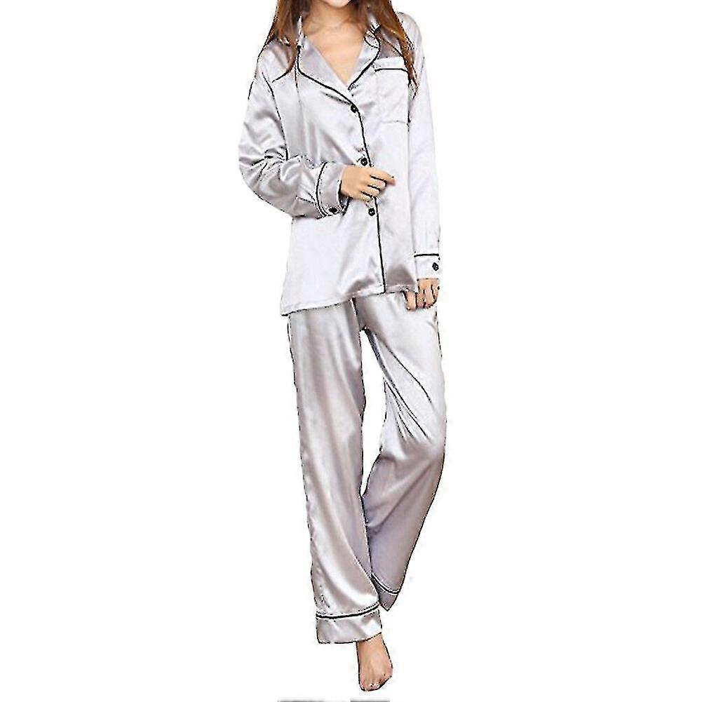 (size M) Women's Soft Silk Satin Long Sleeve Sleepwear Pajamas Set