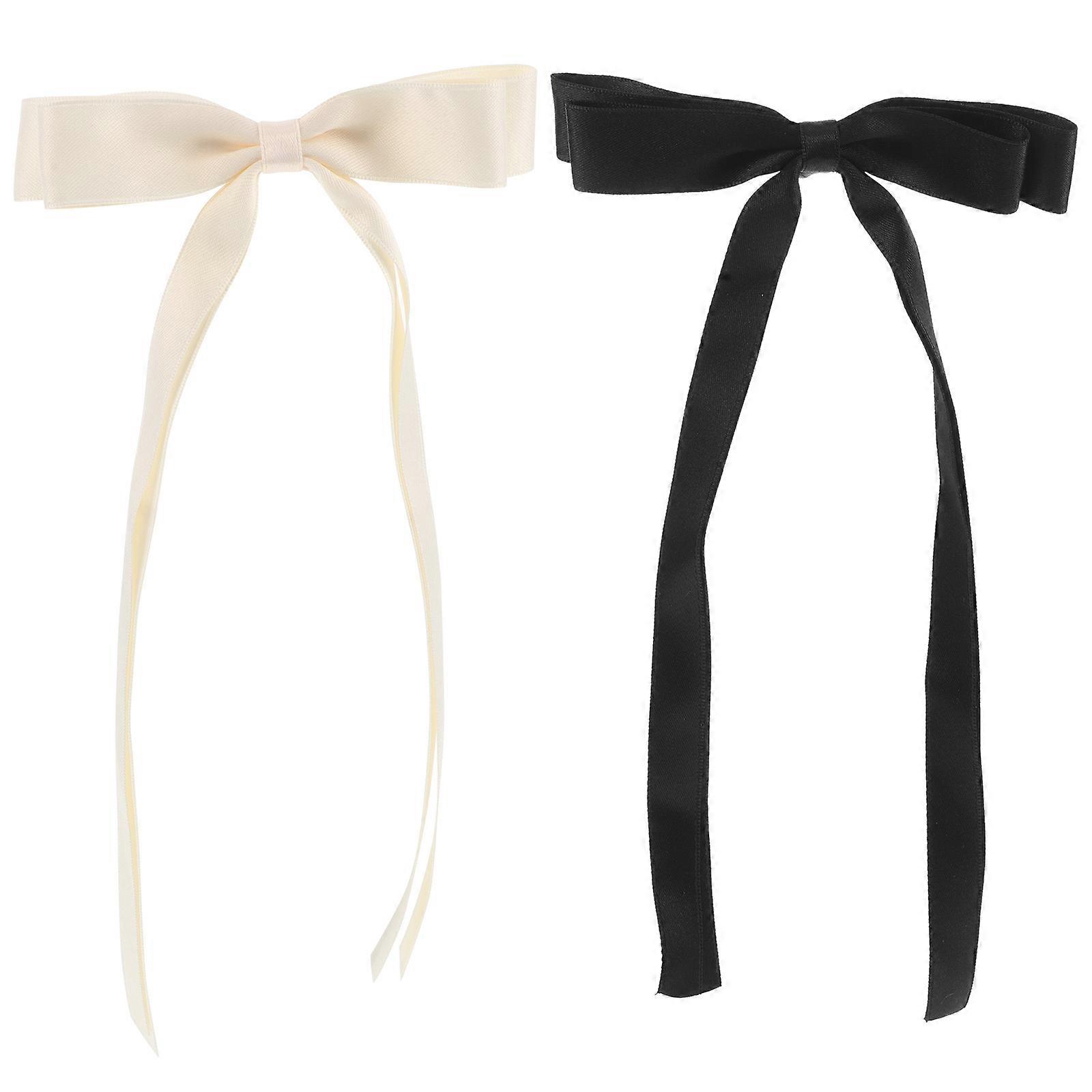Hair Bow Clips 2PCS Long Tail Bowknot Hair Accessories Durable for Parties Weddings Daily Wear Beige Black