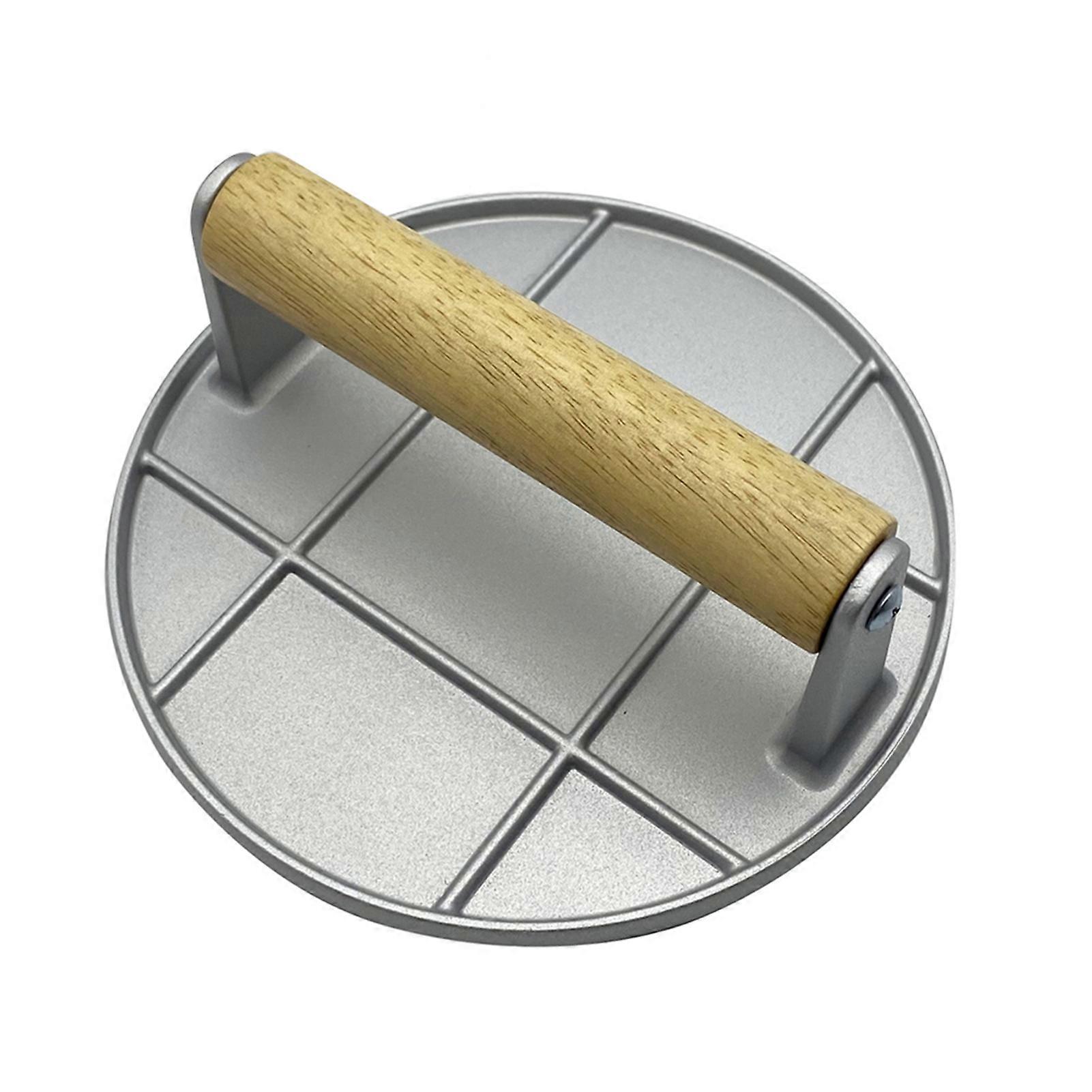 Meat Press Heat-resistant Ergonomic Wooden Handle Food-grade Cast Iron Round Burger Press Kitchen Tool Meat Press Plate