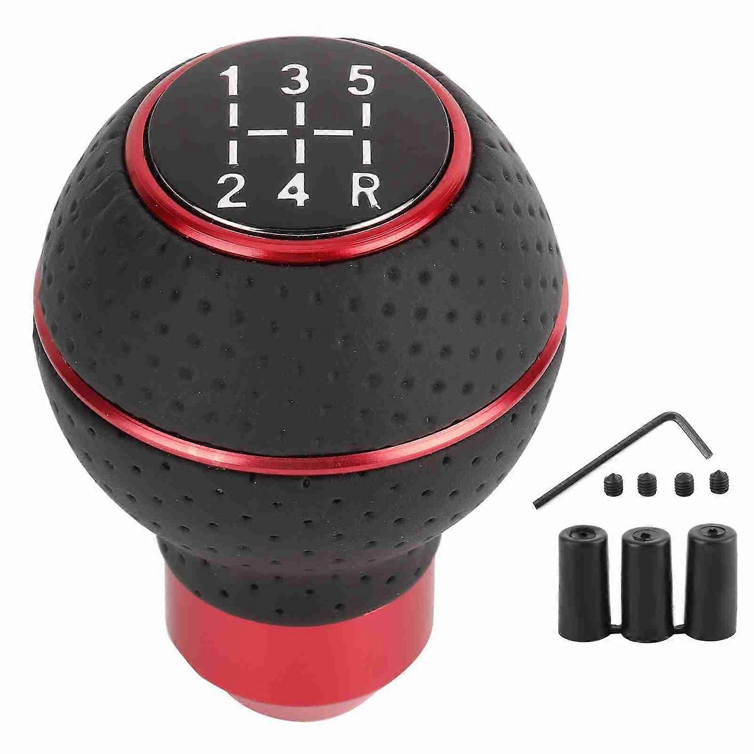 5 Speed Gear Shift Knob Stick Aluminium Alloy and Leather Manual Automobiles AccessoryRed