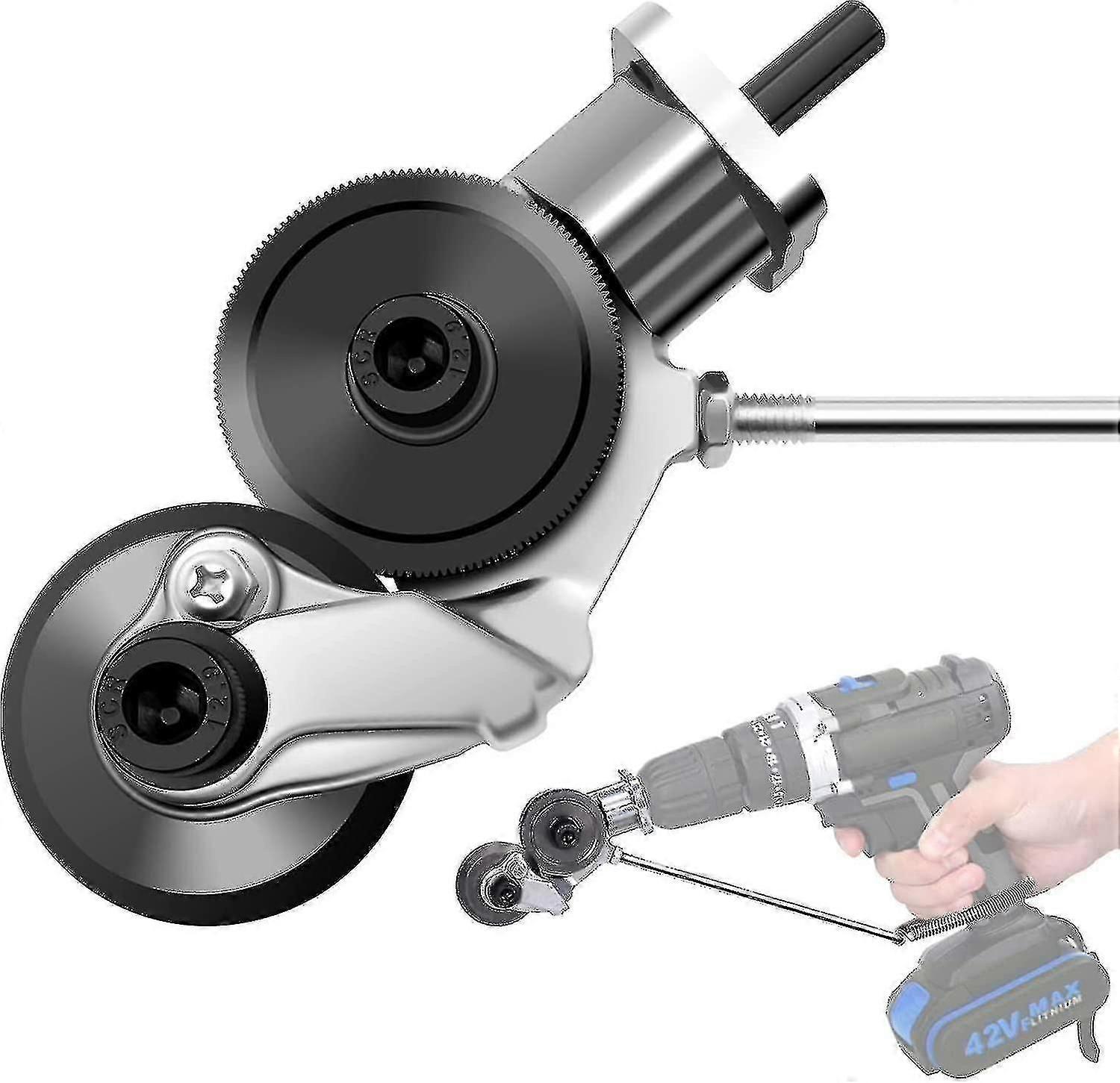 Electric Drill Plate CutterUse With Confidence, Save Energy, Increase Efficiency, Great For Cutting a Variety Of Materials.Excellent Cutting Effect Cutting Jobs Becomes Easier, Faster And Safer With This Double Headed Sheet Metal Nibbler, Fitting Effortlessly Into Any Standard Drill And Creates A Precision, Burr Edge.Compact DesignThe size of the drill attachment, in particular, is designed to be very compact, making this drill attachment easy to store away and perfect to fit into your toolbox or storage cabinet when not in use.Wide ApplicationElectric drill plate cutter suitable for cut sheet metal, corrugated material, pipes, complex profiles, powder coated material, stainless steel, copper, aluminium, formica, plastic, fibreglass, etc.Easy to UsePerfect for your drill , this innovative metal accessory quickly transforms your drill into an electric scissor. The accessory is easy to install, secure and ready for immediate use.Our products are made with the highest quality materials and are designed to provide you with the best possible user experience. We strive to ship out all orders within three days of purchase, and the estimated delivery time is 8-15 days.When shopping, please pay attention to the size and dimensions of the product to ensure that it meets your needs. In the title and , we have provided detailed information about the product, including its features and specificationsWe want you to be completely satisfied with your purchase, so if you have any questions or concerns, please don& 39;& 39;& 39;& 39;& 39;& 39;& 39;& 39;t hesitate to contact us. We are here to help and will do our best to assist you.Thank you for choosing our product. We hope you enjoy it"