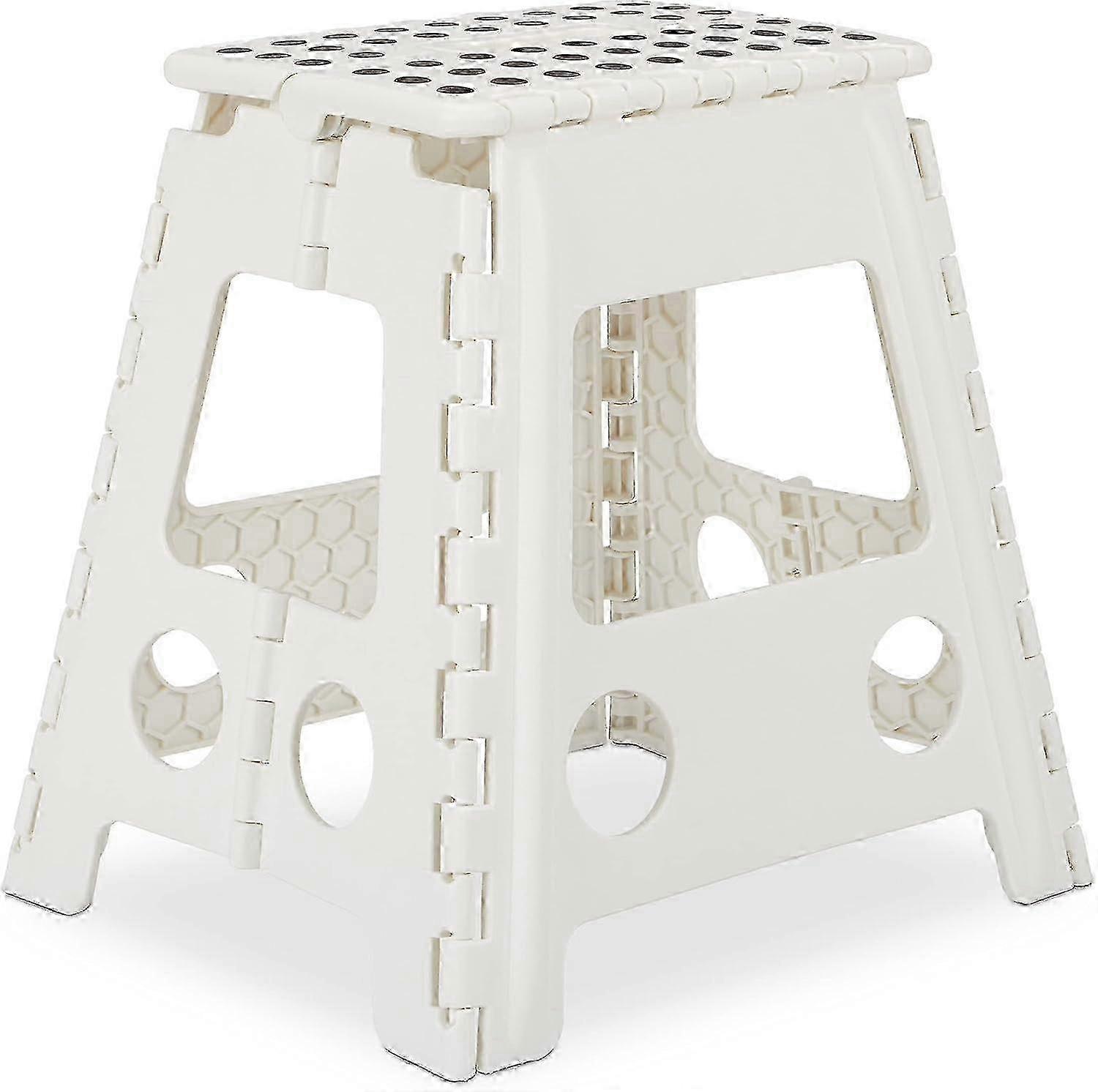Foldable: folding stool made of easy-care white plastic, height 39.5 cm - universal Storage: Foldable household stool to save space, perfect as a bathroom or camping stool Portable: thanks to its foldable structure, its light weight, it is very comfortable to carry the handle from point A to point B Household items: increase the workload and reach high shelves - Maximum load: 120 kg Practical: can be used as a stool for parents and children in the bathroom - can sit down quickly Note: Due to the light and screen setting difference, the item's color may be slightly different from the pictures. Please allow slight dimension difference due to different manual measurement.