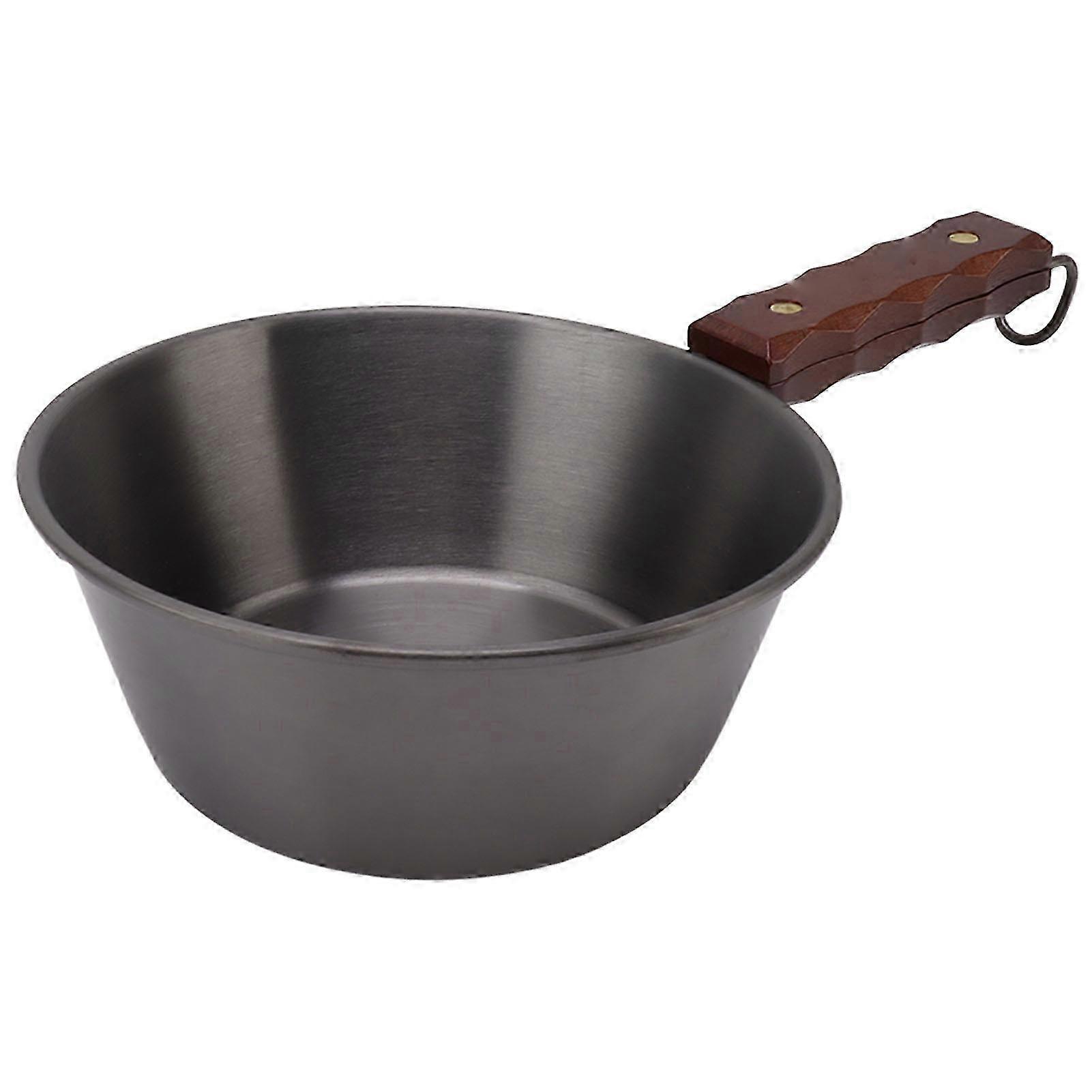 Portable 304 Stainless Steel Camping Skillet with Wood Handle for Outdoor Hiking Picnics