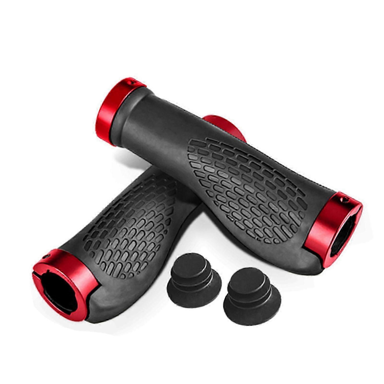 Bike Handlebar Grips Aluminium Alloy and Rubber Anti Skid Bicycle Handles for Cycling Replacement Red