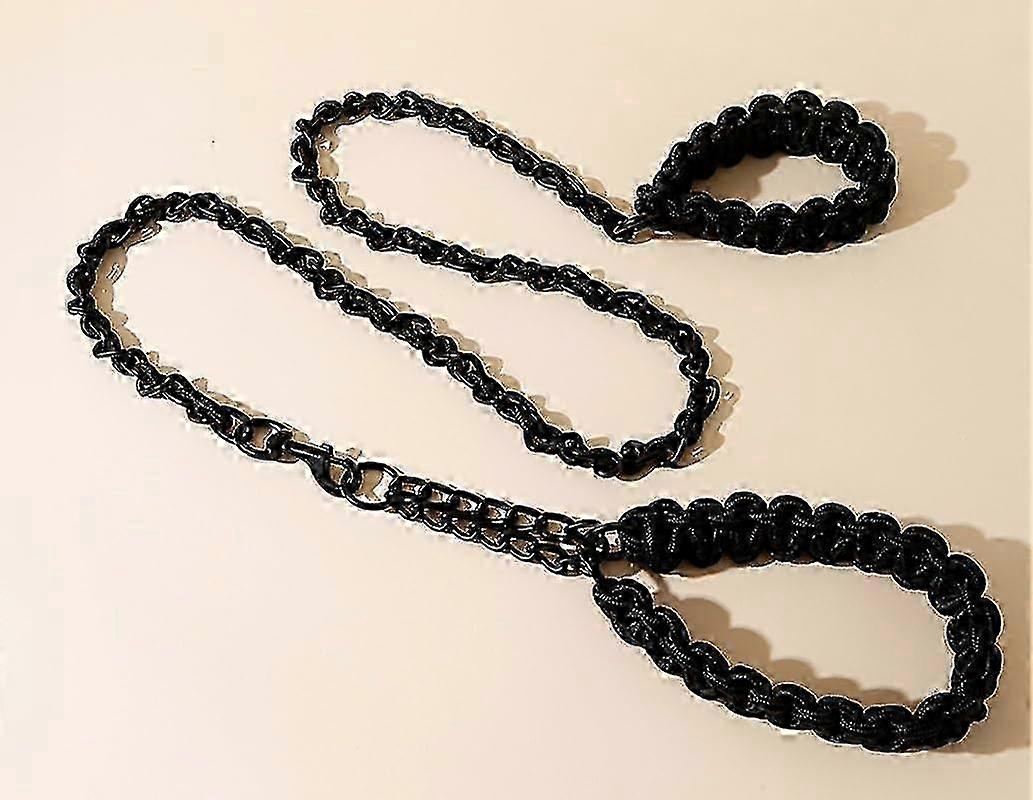 Chew Resistant Dog Leash, Heavy Duty Dog Leash, Metal Pet Chain with Soft Rope Handle for Medium Large Dogs (66 inch), Black, XL