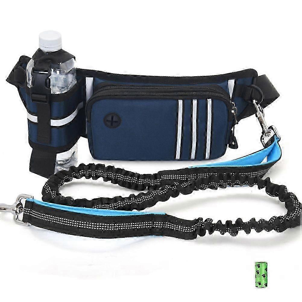 Dog Hands Free Leash with Zipper Pouch Water Bottle Holder Reflective Running Leash Waist Bag Pack for Outdoor Jogging Walking