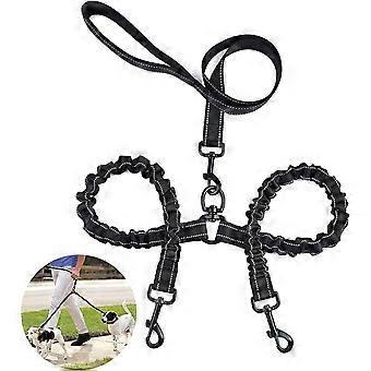 Double Dog Leash For 2 Dogs Large Dog Leash Portable Bite Resistant Elastic Leash Black