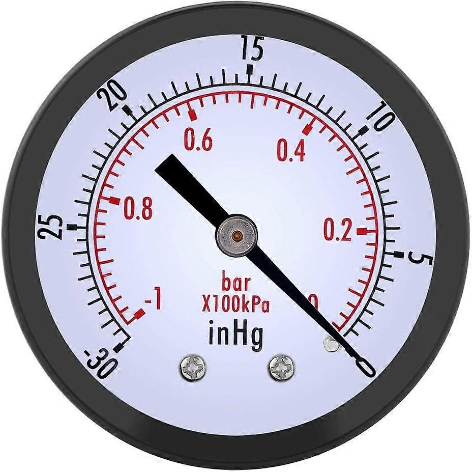 Vacuum Gauge, 0~-30inHg 0~-1bar Vacuum Pressure Gauge, 50mm Mini Dial Air Pressure Meter Manometer with 1/4" BSPT Thread for Air Water Gas Oil Pressur