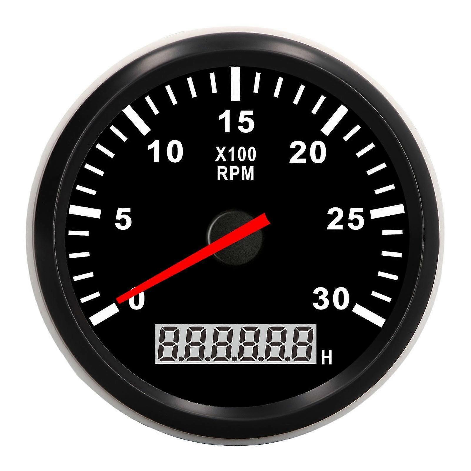Car Truck Boat Tachometer Gauge 85mm/3.35in 3000RPM LCD Hourmeter with Red Backlight IP67 Waterproof