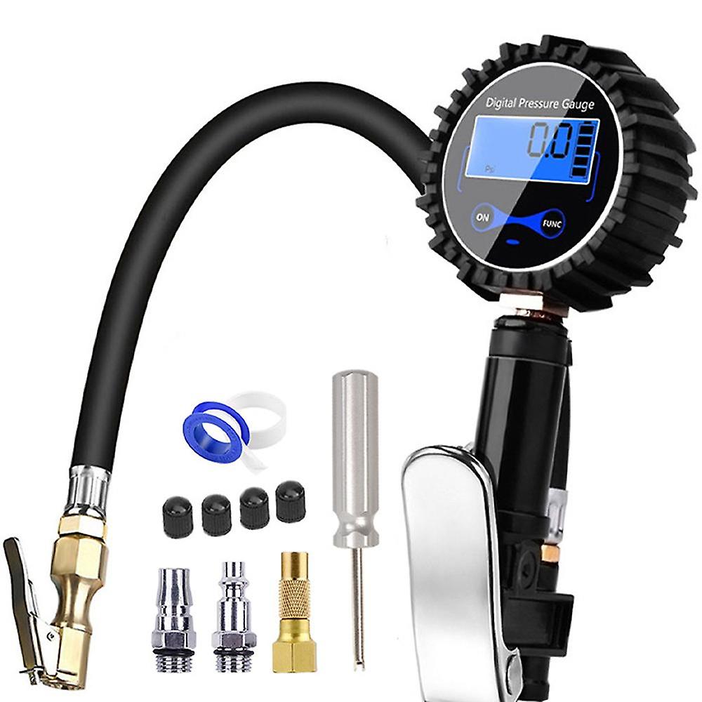 Digital Tire Pressure Gauge 200PSI Inflator and Compressor Gun Nozzle with LCD Display for Car Truck Motorcycle Bike, Black, Ten Pieces
