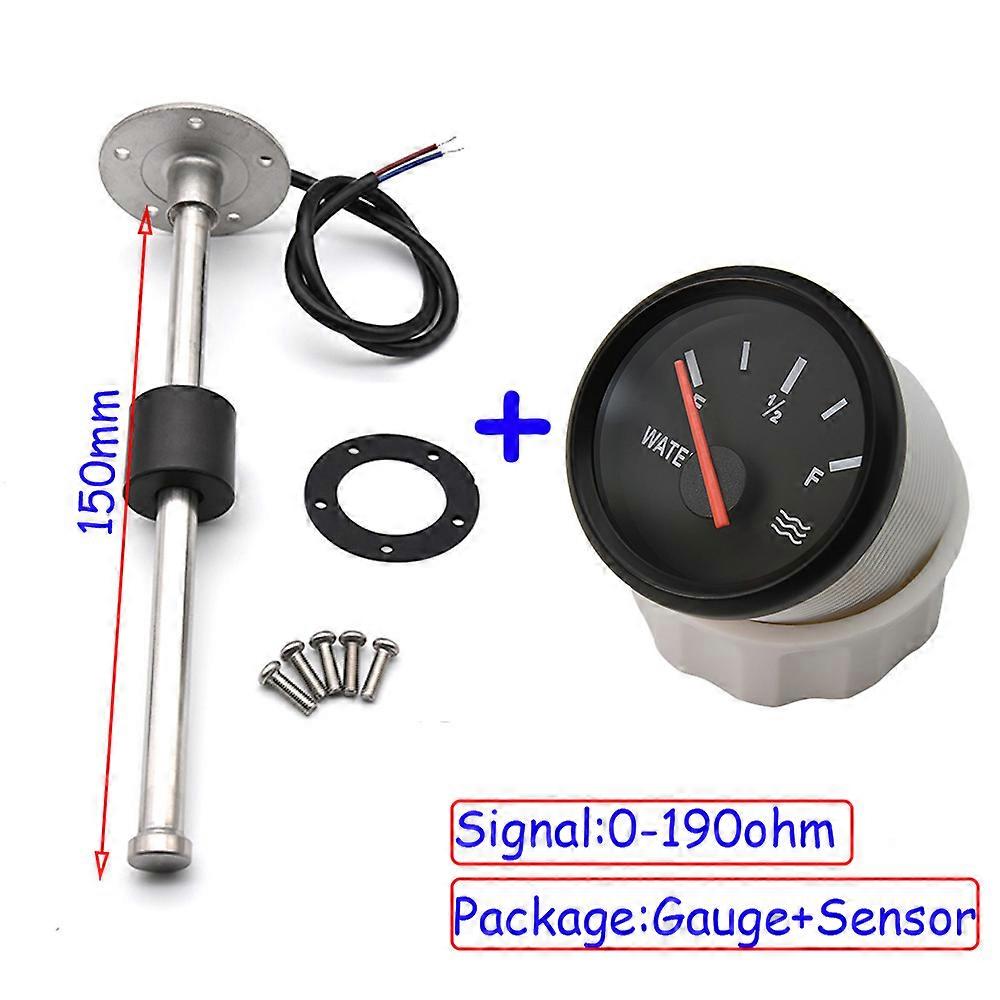 52MM Gauge Water Level Gauge Red Light 0-190 Ohm Water Tank Level Indicator Meter with Fuel Water Level Sensor 150MM 200MM 250MM
