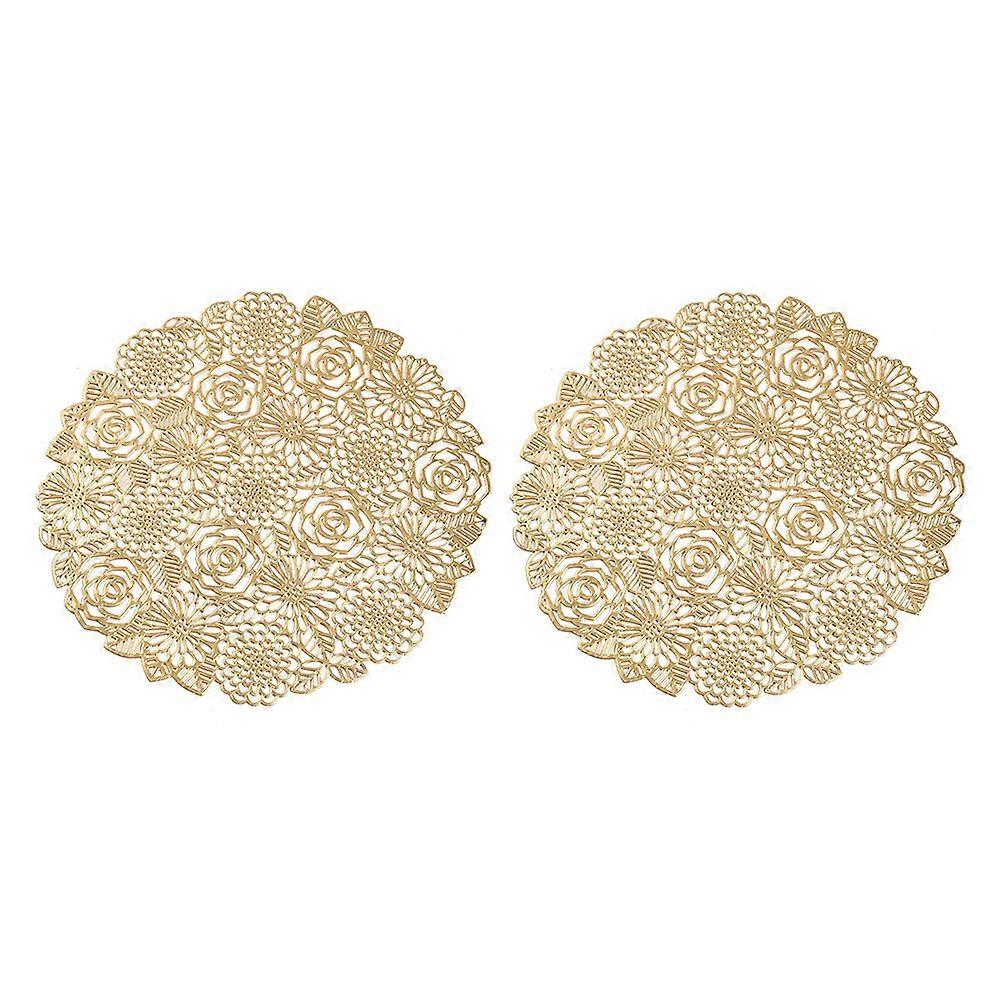 Anti Scald Placemat Home Decoration Gold 38CM Heat Insulation Creative Design Hollow Out Rose Pattern 2Pcs