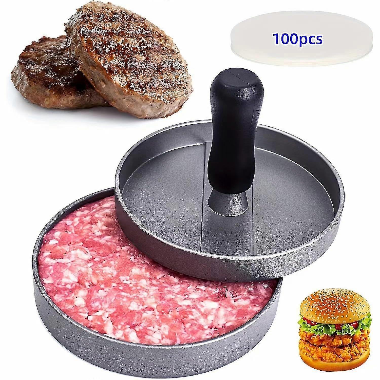 Burger Press with 100 Patty Papers, Non-Stick Hamburger Patty Maker with Wax Paper, Aluminum Burger Maker for Kitchen BBQ Grill