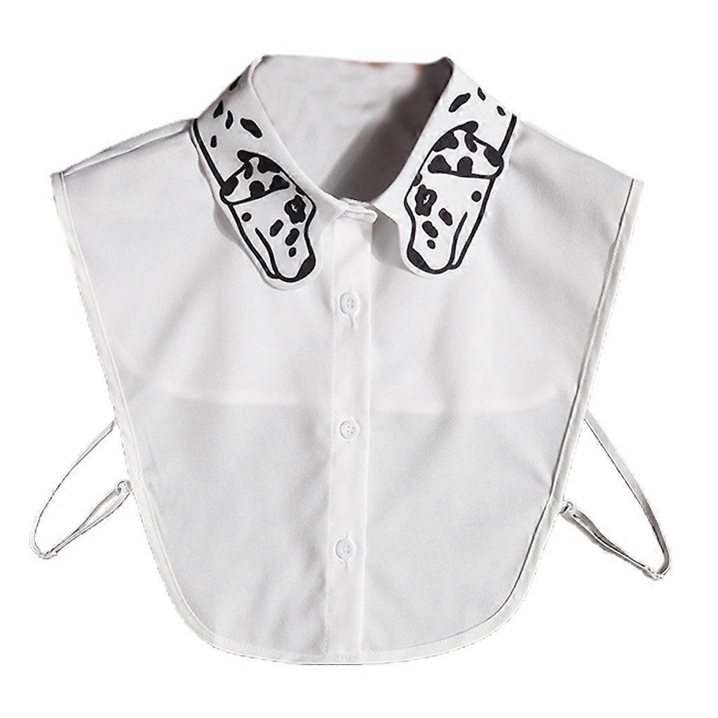 ["brand new and high quality\n\n\nFeatures:\n\nVintage black spotty dog pattern print lapel fake collar, white color half shirt, button down.\nSo charming and unique: stylish women's simple design false dickey for any girls/women's.\nMade of good quality chiffon material, lightweight, comfortable to for touch and soft to wear. \nBoth sides of this false collar have adjustable straps, you can fix the collar position easily.\nCan go under any dress, shirt, sweater, sweatshirt, cardigan, blouse and suit, etc.\n\nSpecification:\nMaterial: Chiffon\nColor: White+Black\nApplicable Gender: Female\nProcessing Method: Embroidery\nFunction: Decoration\nPattern: Plain\nSuitable Seasons: Autumn and Winter\nStyle: Fake collar\nProduct Category: Collar Flower, Bow Tie\nSize: One Size\nNeckline: app. 40cm/15.75in\nShoulder Width: app. 38cm/14.96in\nCollar Mouth Width: app. 5cm/1.97in\nFront Length: app. 35cm/13.78in\nBack Length: app. 21cm/8.27in\nQuantity: 1 pc\n\nNote:\nTransition: 1cm=10mm=0.39inch\nNo retail package.\nPlease allow 1-3mm error due to manual measurement. pls make sure you do not mind before you bid.\nDue to the difference between different monitors, the picture may not reflect the actual color of the item. Thank you!\n\nPackage includes:\n1 x False Collar(other accessories demo in the picture is not included.)"]