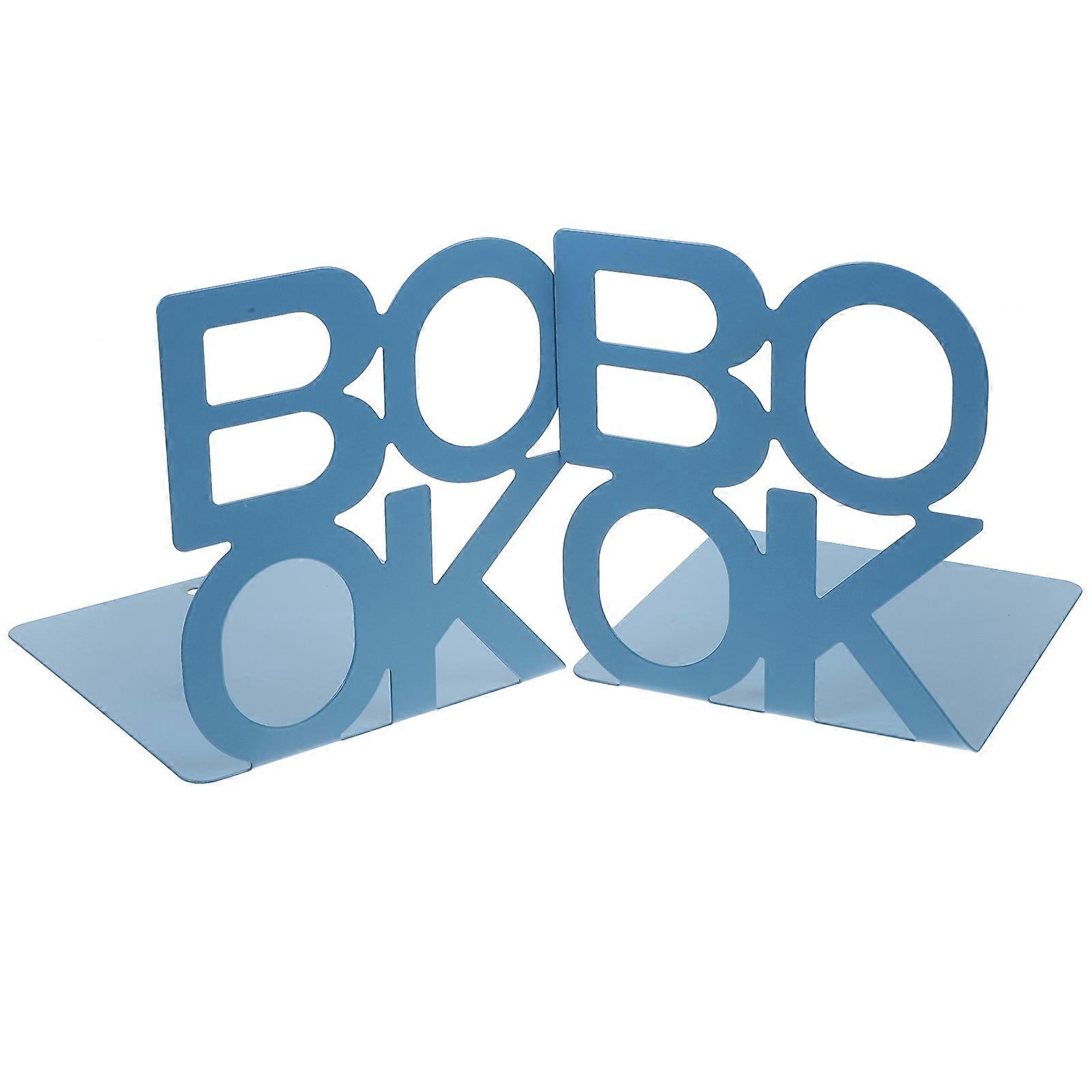 Office Letter Shaped Book Organizer Non-Slip Metal Book Holders for Study Blue 14x13x12.5cm 2Pcs