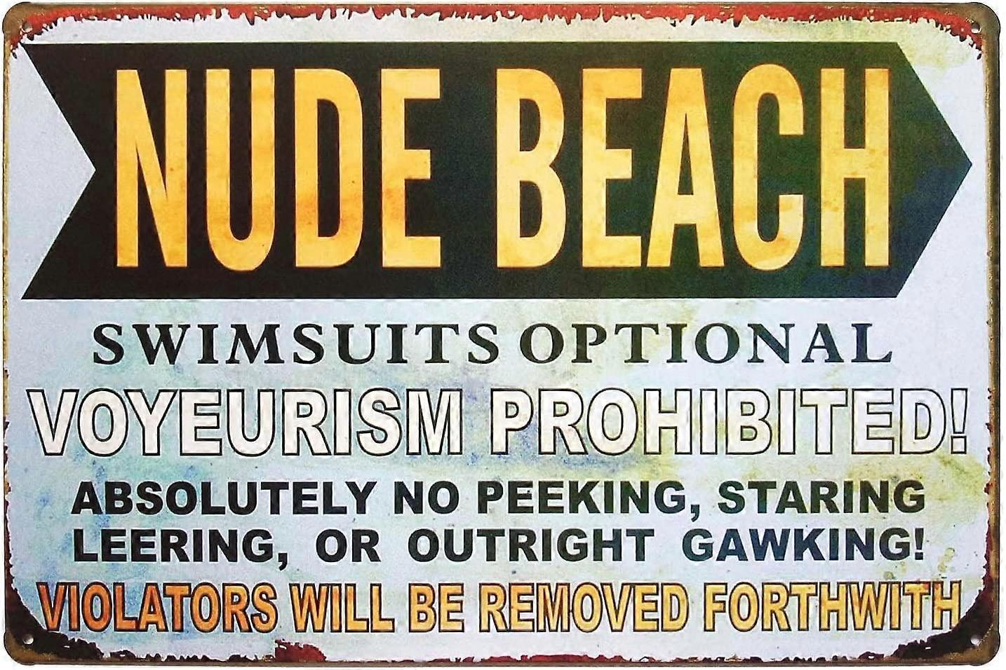 Nude Beach Swimsuits Optional Voyeurism Prohibited Metal Tin Sign Vintage Plaque Home Wall Decor, 8x12 Inches