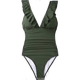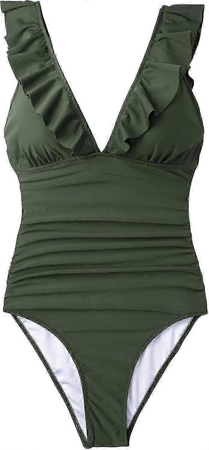 Women's Tummy Control One Piece Swimsuit - Ruffled Lace Up Design for Beach