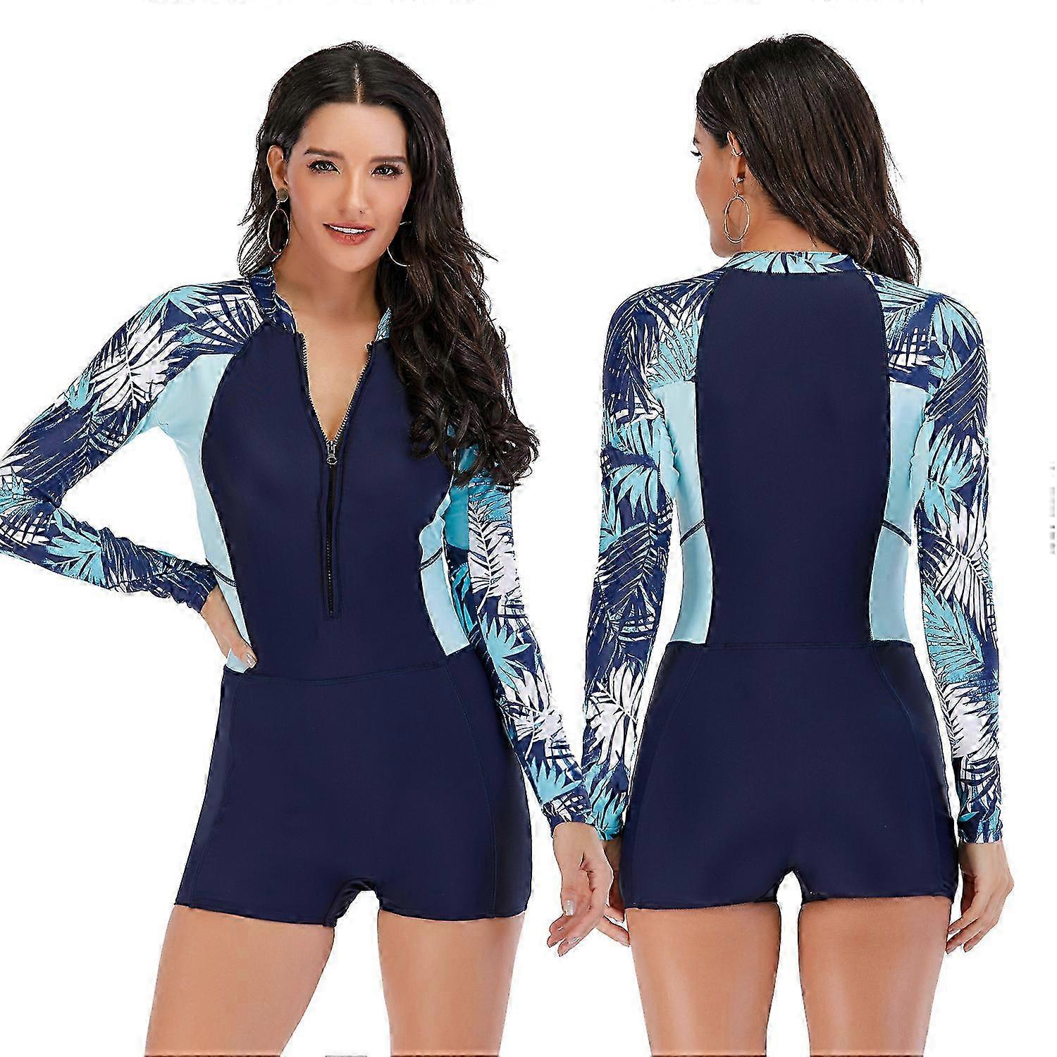 Swimsuit Women Boyleg One Piece Long Sleeve Bathing Suit Surf Wear Sun Protection Wetsuit _b
