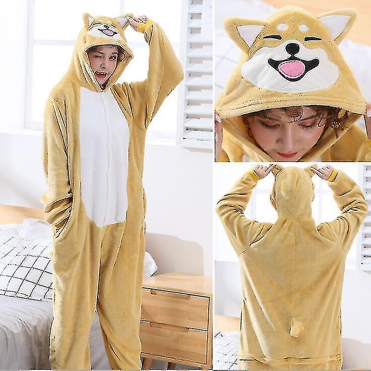 Sleepwear Akita Dog Women Girl Onesie Cute Animal Cartoon Shiba Inu Overall Winter Warm Soft Flannel Suit Home Wear Unisexl