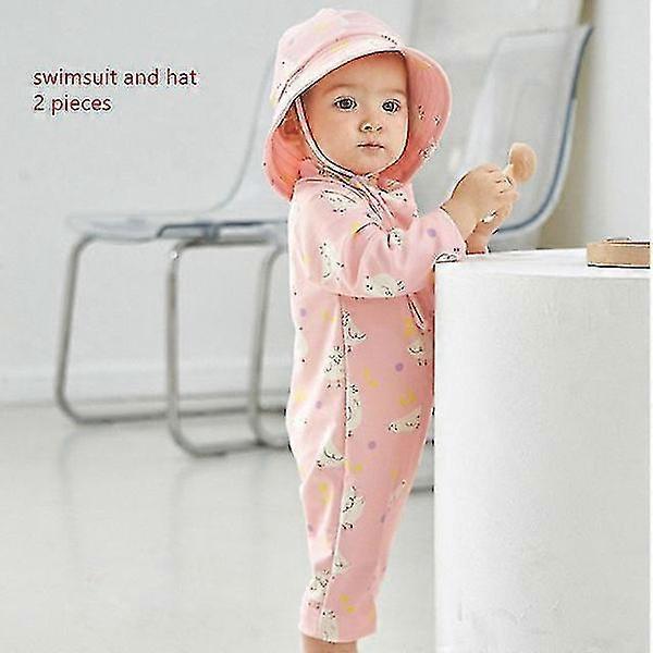 Kids sun-protected one-piece swimsuit 2022 - Quick-drying surf suit for boys and girls 3-4 years pink bird with hat