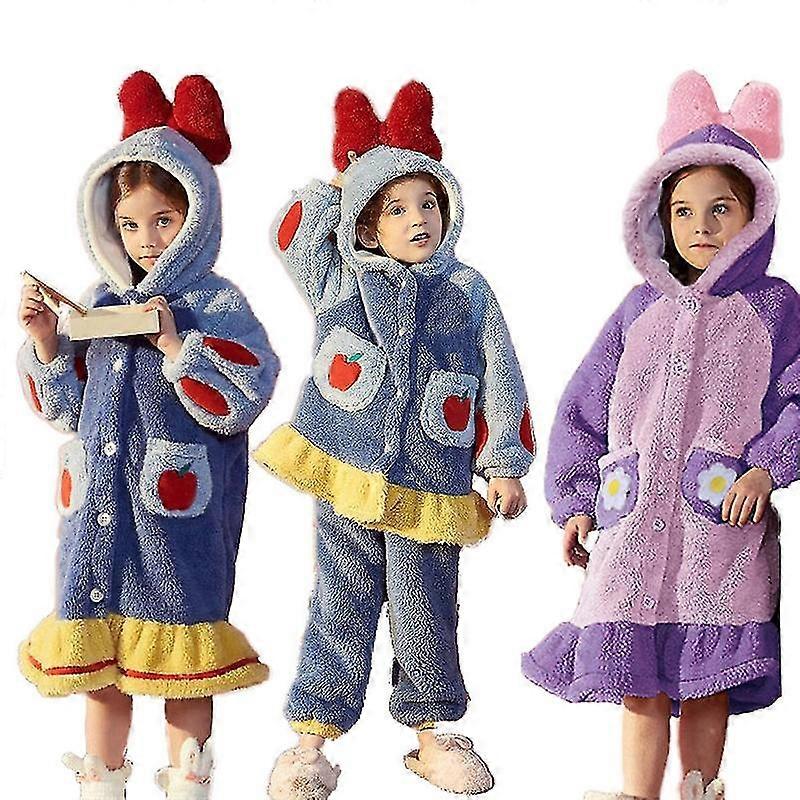 Kids Sleepwear Winter Flannel Soft Warm Girls Pajamas Set Children Nightgown Long Sleeve Hooded Pyjamas Cartoon Homewear
